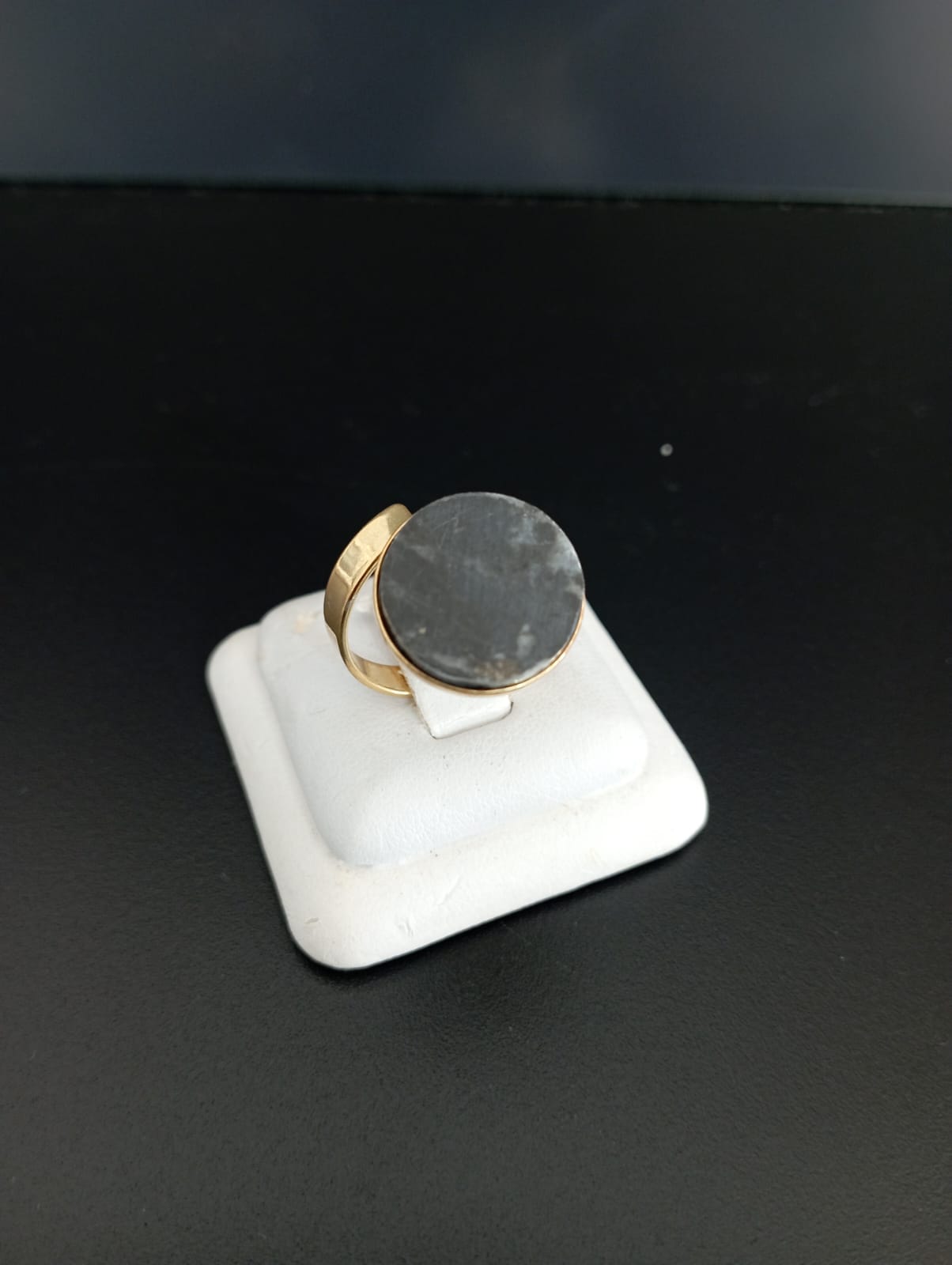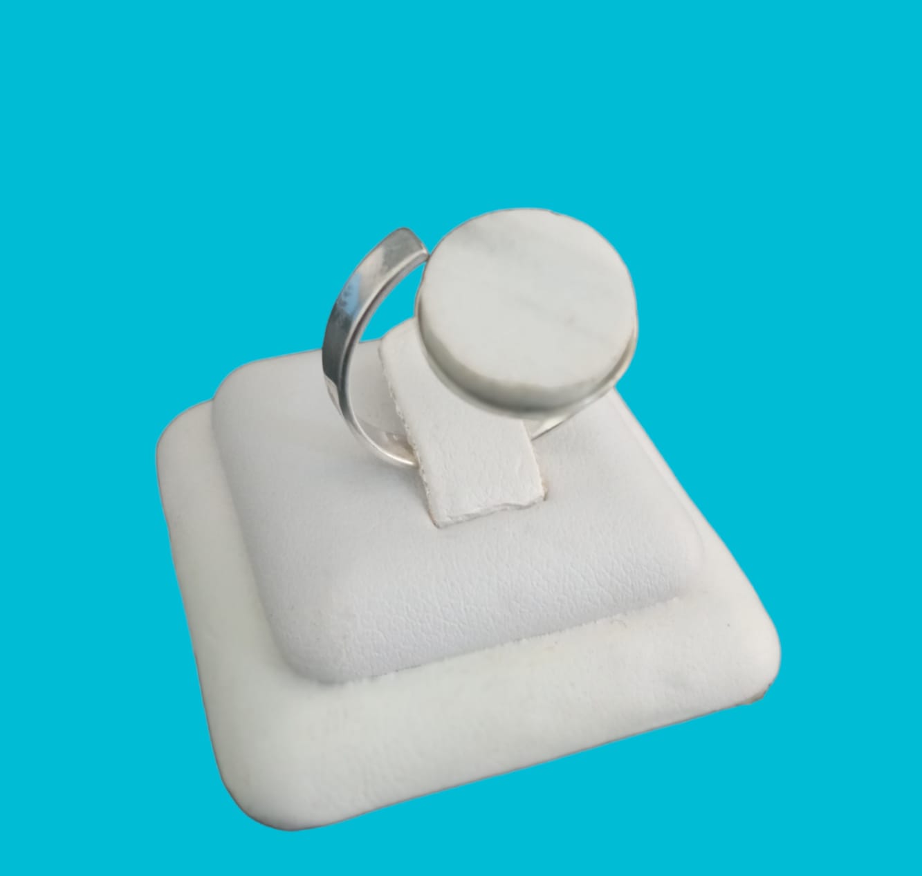 Anello in Argento e Marmo tondo 12mm con fascia aperta e regolabile.